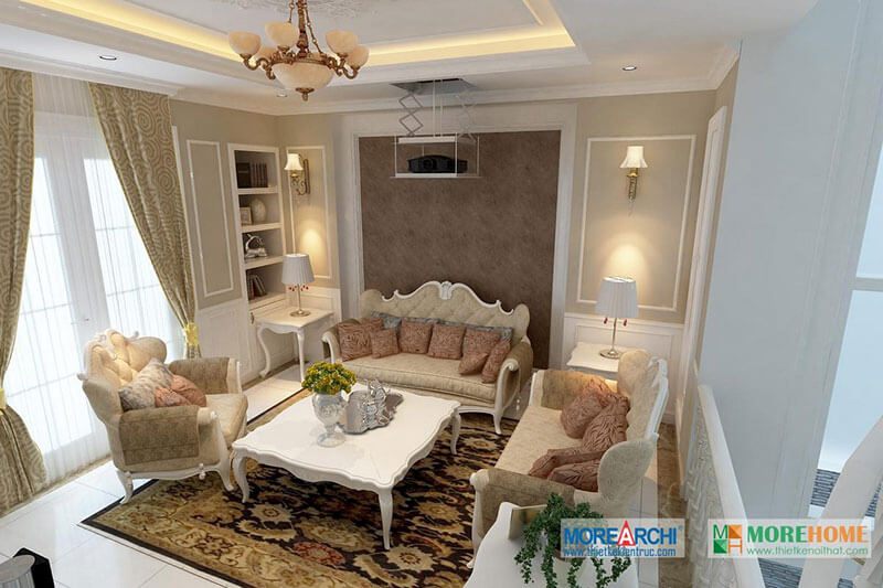 trong không gian. Sofa phòng khách bọc vải có đường cong tân cổ điển, tạo nên một vẻ đẹp sang trọng và làm nổi bật trong không gian.